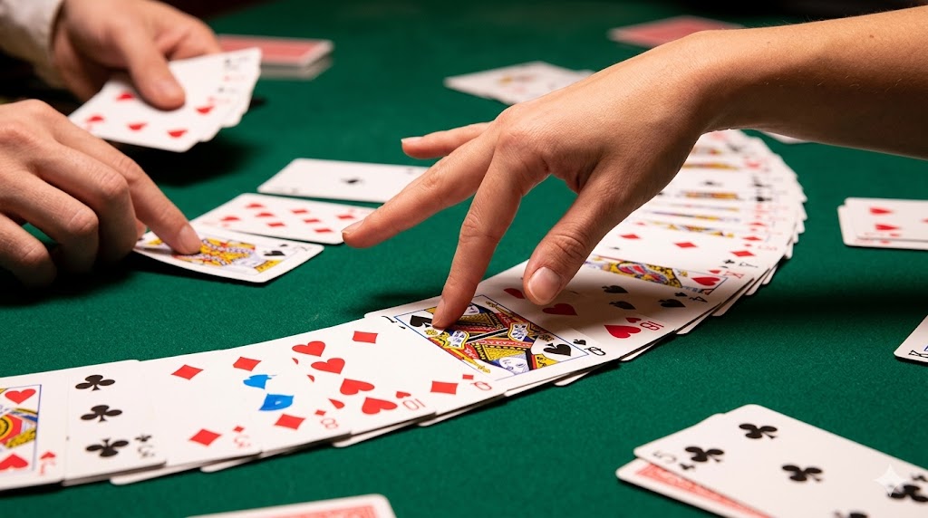 Kaksinpelissä korttien laskeminen on helpompaa.