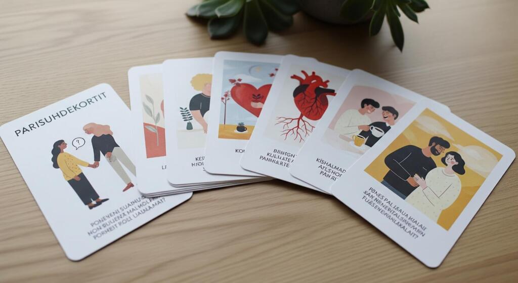 Hyvin valitut parisuhdekortit kysymyksiä voivat avata oven rehellisempään, läheisempään ja kestävämpään suhteeseen. Lopulta tärkeintä ei kuitenkaan ole itse kortit, vaan se, että pysähdytte kuuntelemaan toisianne.
