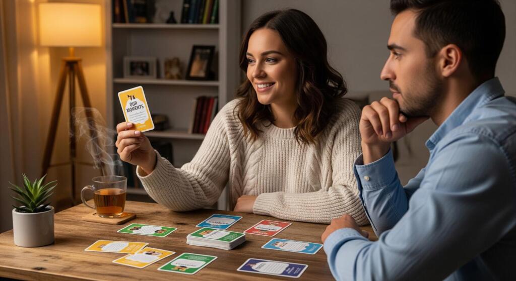 Moni pari huomaa, että parhaat keskustelut syntyvät silloin, kun ympäristö on rauhallinen. Esimerkiksi ilta kotona, yhteinen kävely tai viikonlopun rento hetki voivat olla täydellisiä tilanteita korttien käyttöön.